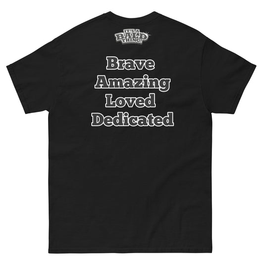 Unisex classic tee. Brave, Amazing, Loved, Dedicated